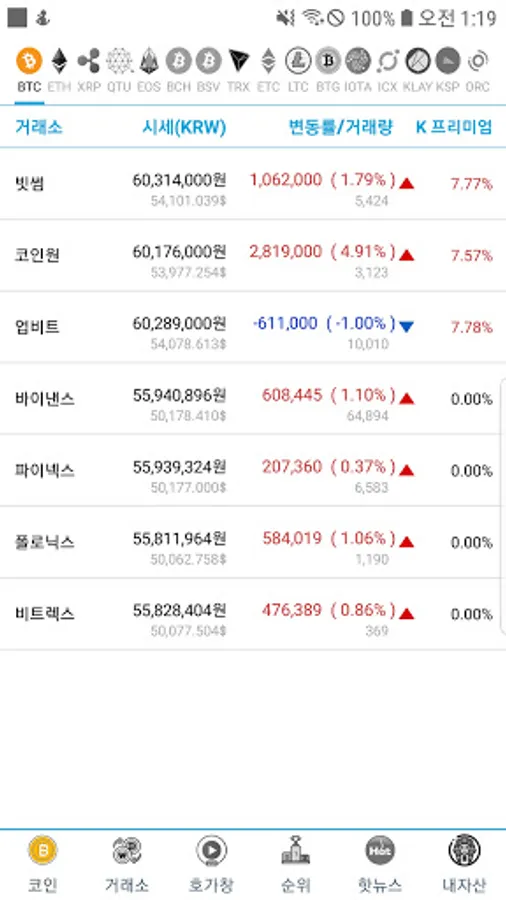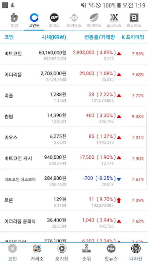 Coin List-Provides real-time market price inquiry, premium inquiry, market cap ranking, coin information, etc. of the world's fastest and easiest virtual currency.