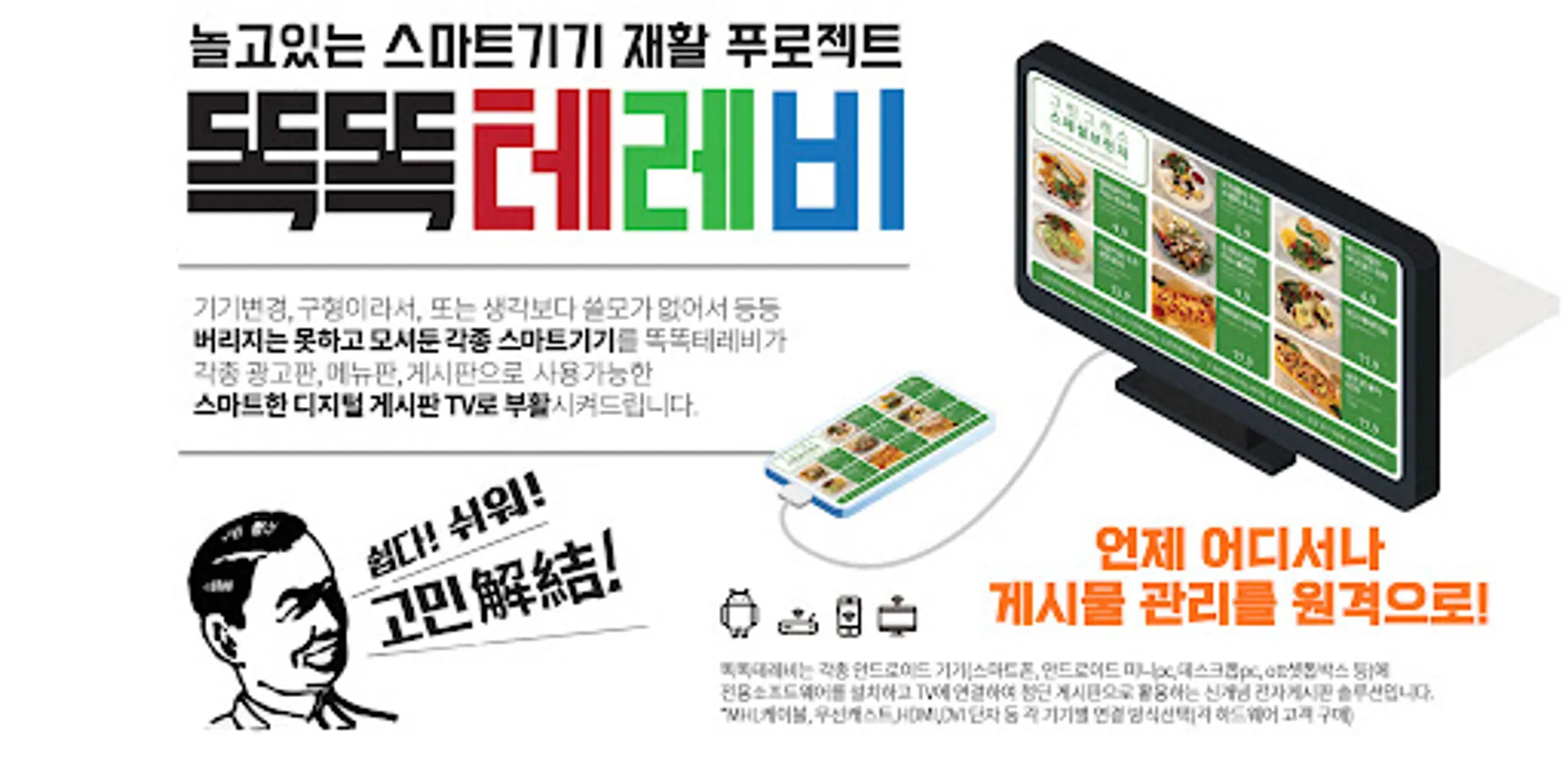★ Smart TV is a new concept electronic bulletin board solution that installs this application on various Android devices (smartphone, Android mini PC, desktop PC, OTT set-top box, etc.) and connects it to the TV to use as a high-tech bulletin board.