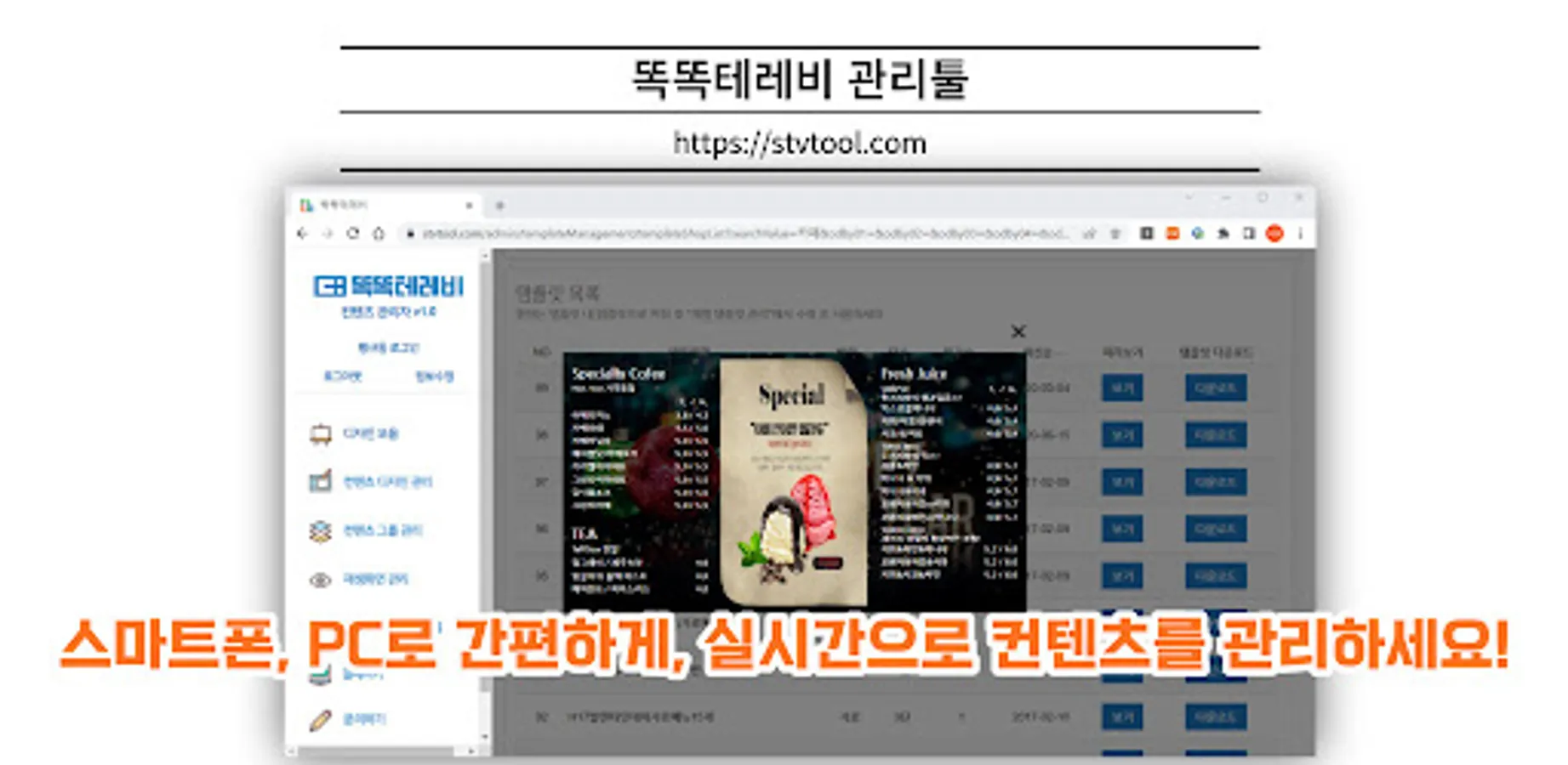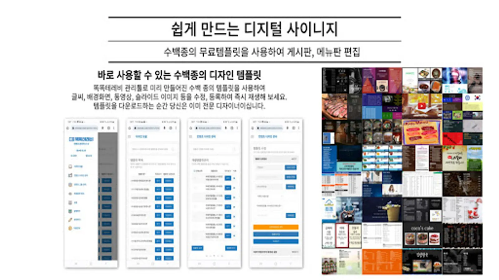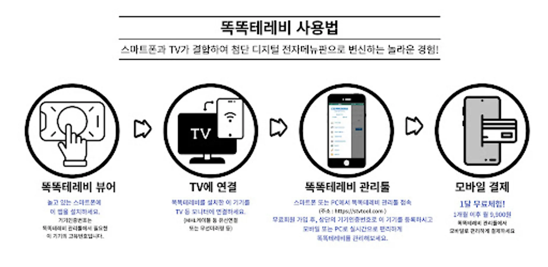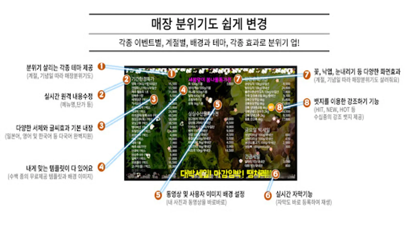 ★ Smart Flat Co., Ltd. is Korea's No. 1 electronic menu/bulletin board company that has provided cloud-based real-time remote management services to about 30,000 digital signages since 2015. www.smartflat.co.kr