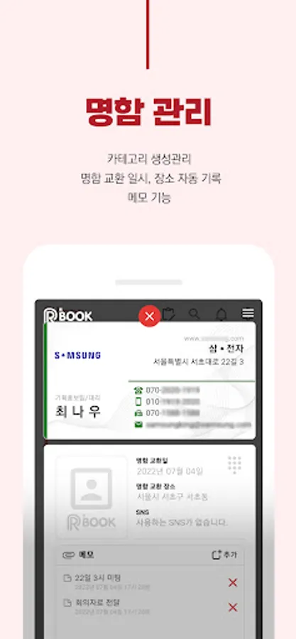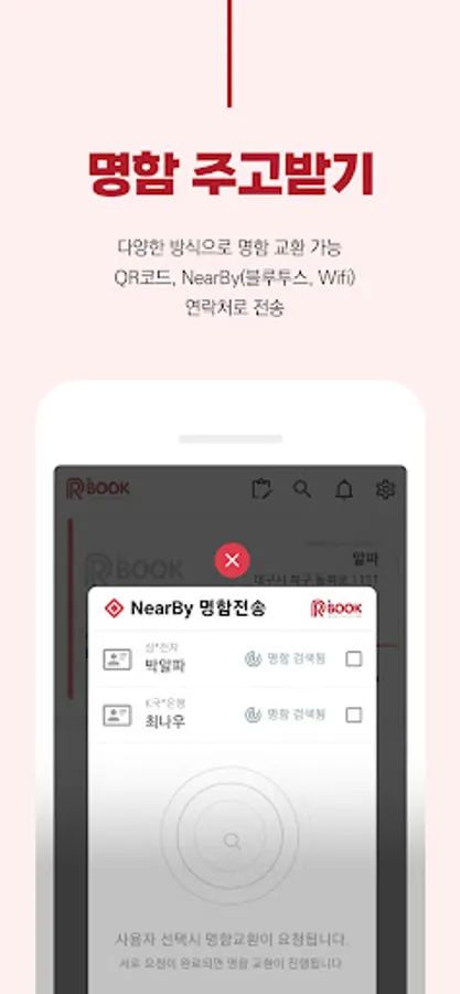 You can easily exchange business cards with QR code, NearBy, or phone number.