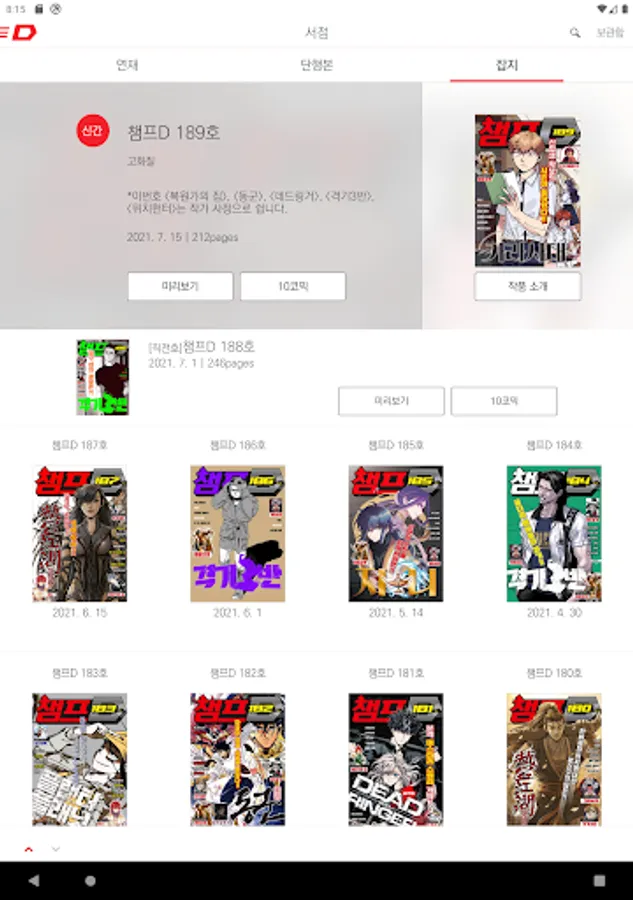 It is a comic magazine 'Champ D' where you can see various serialized comics at once.