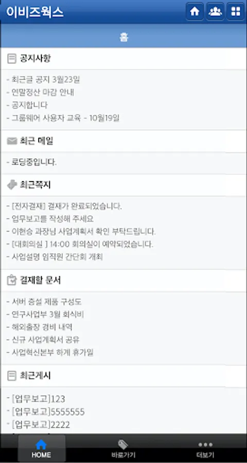 -You can freely use the main services provided by Ebizworks, such as e-mail, electronic payment, schedule management, bulletin board, and employee address book, in a mobile environment, so you can check and process work without restrictions on time and place.