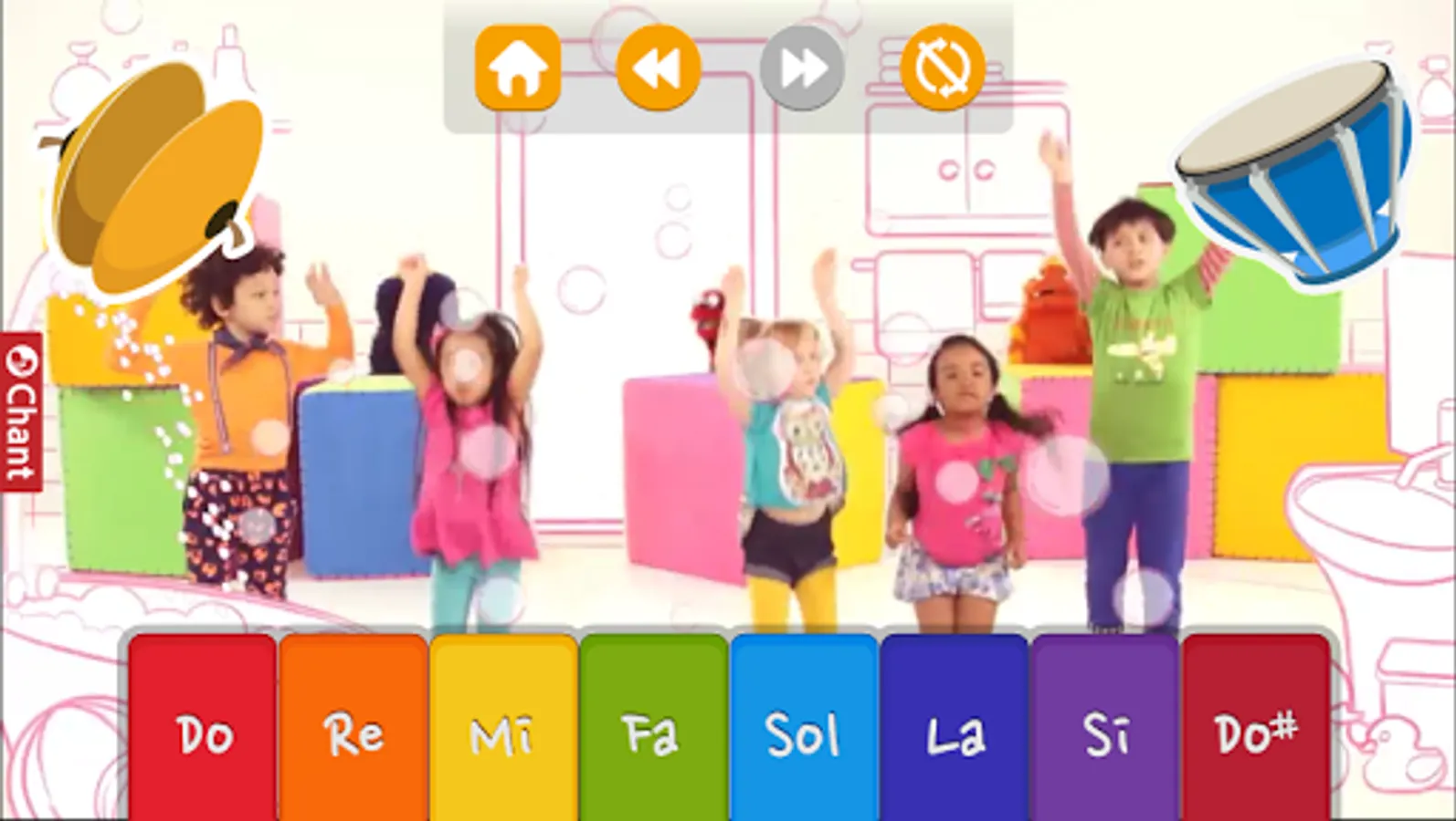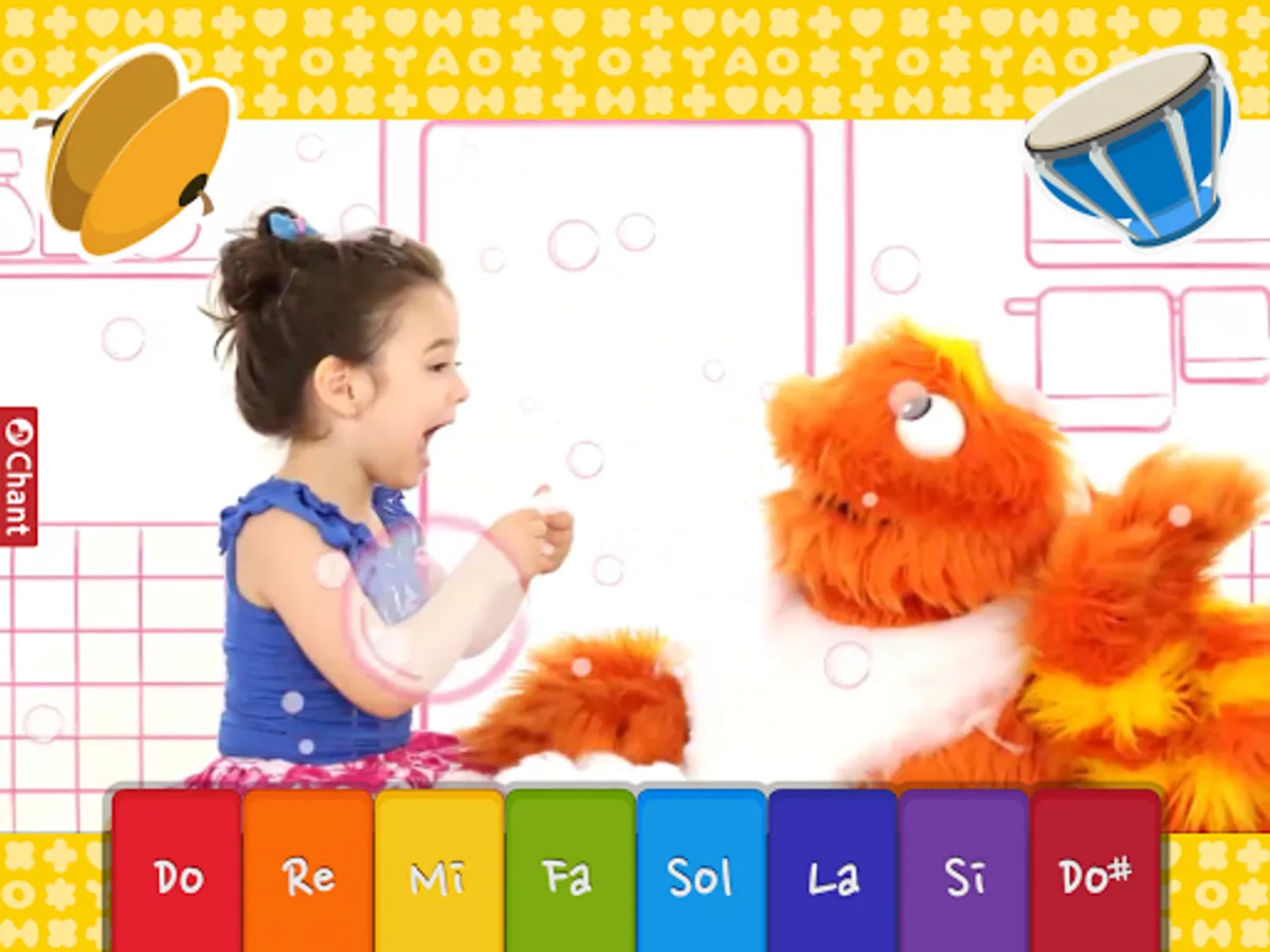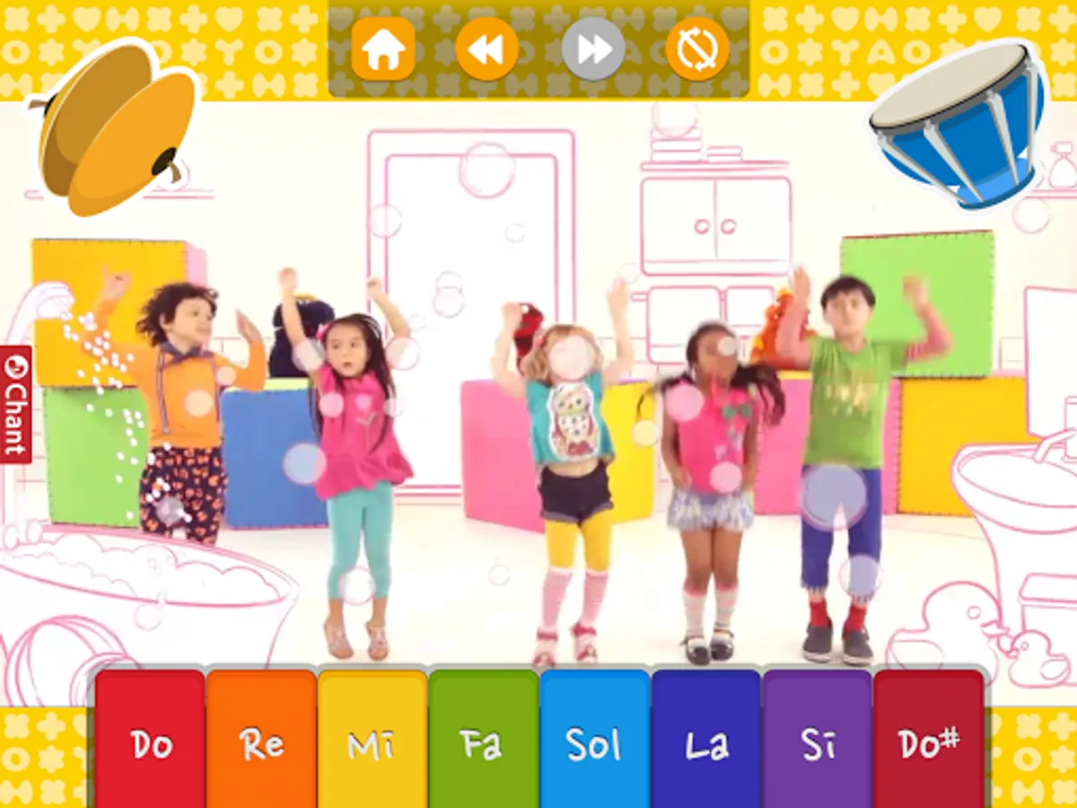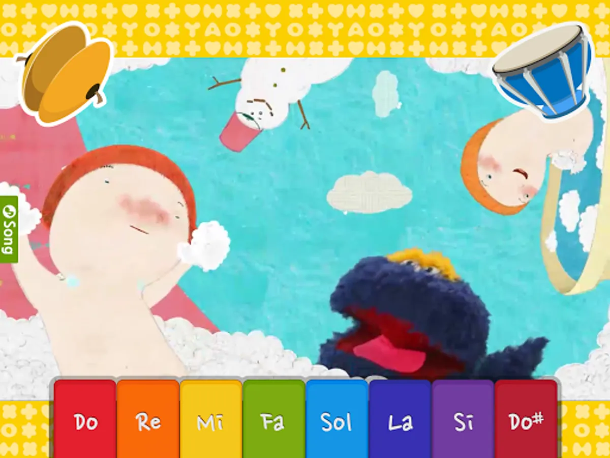 (5) Instrument button: as presses on the icon of cymbals, drums, piano keys playing a musical instrument, you can chant along with the song.