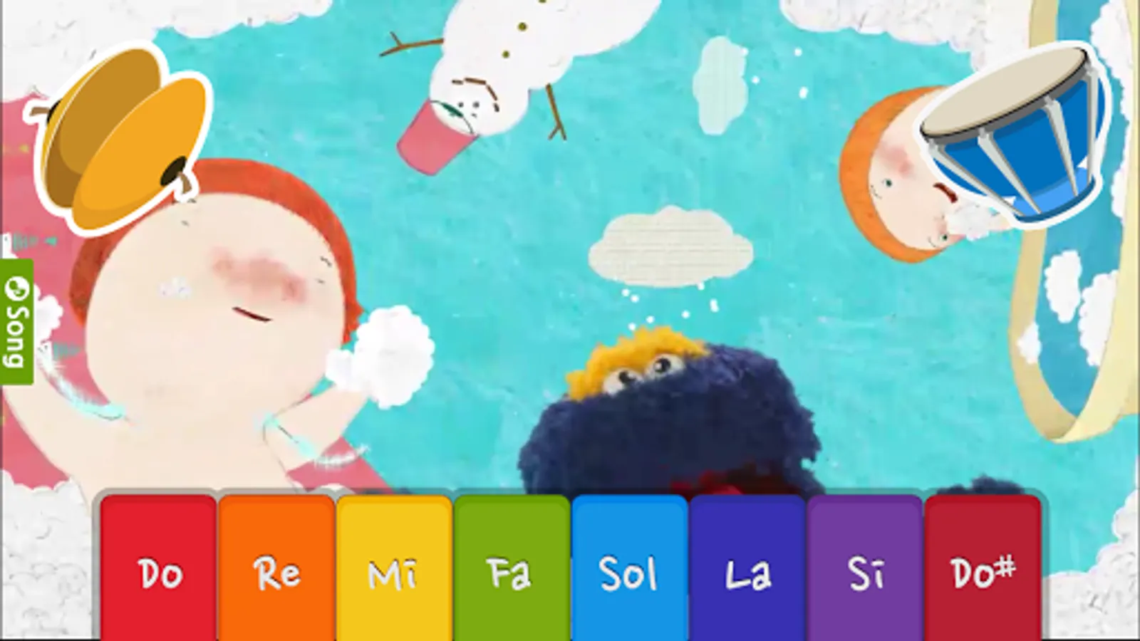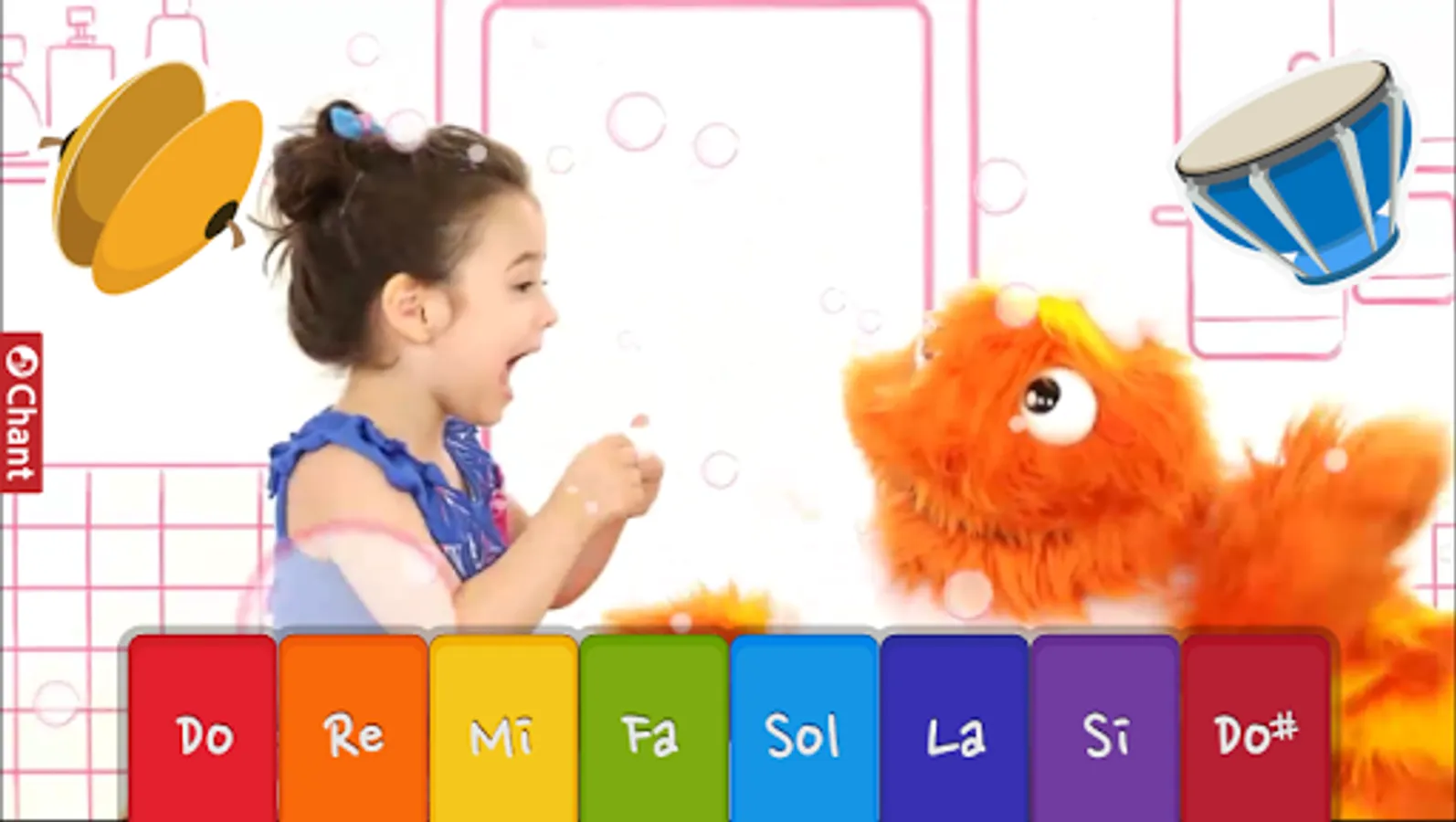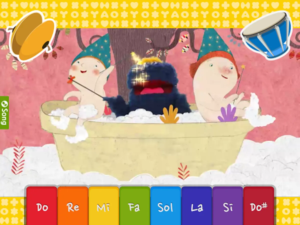 (5) Instrument button: as presses on the icon of cymbals, drums, piano keys playing a musical instrument, you can chant along with the song.