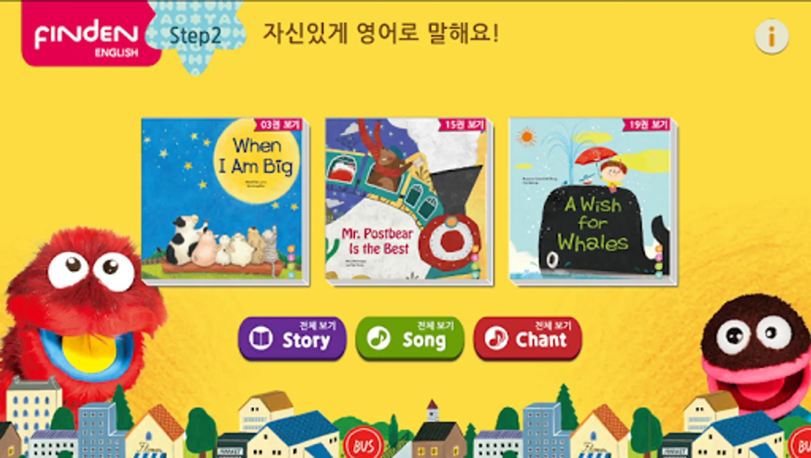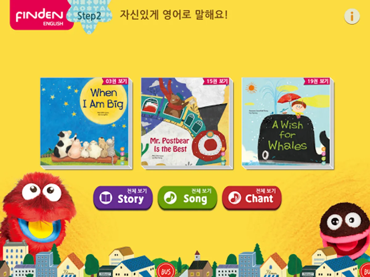 Story of the North Finden English STEP2, packs of three storybook images related to App. You can experience the story animation, story song, chant the alphabet.