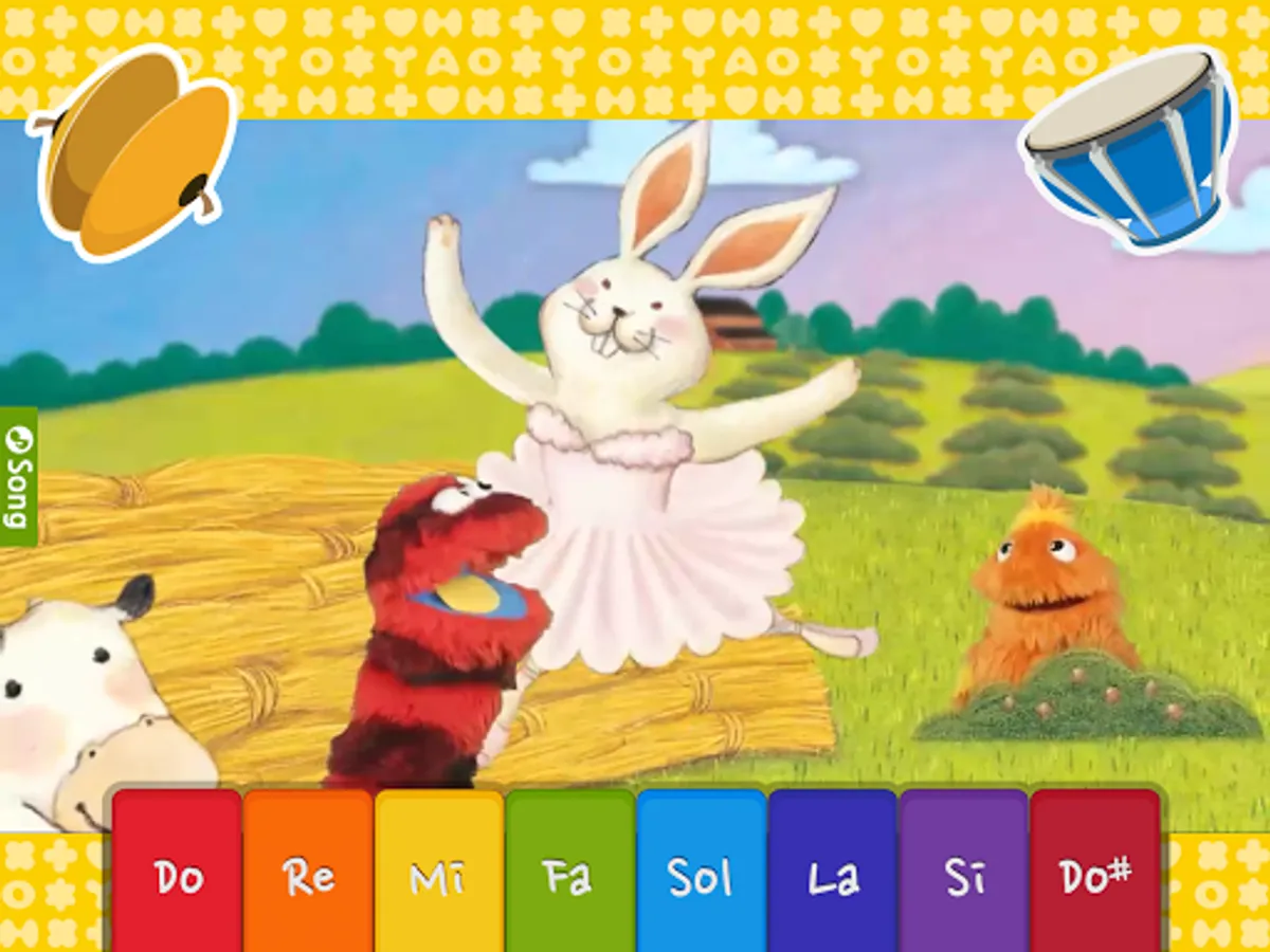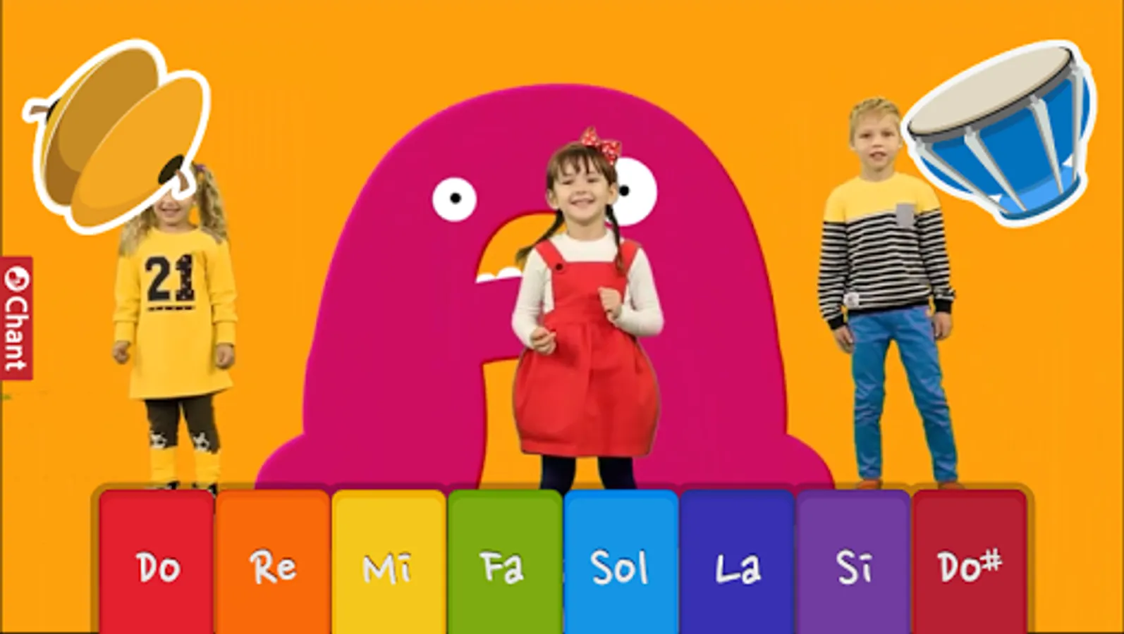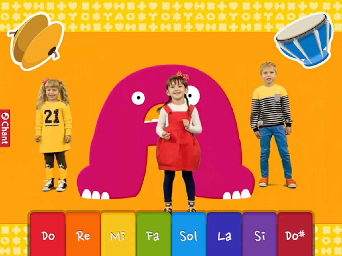 (5) Instrument button: as presses on the icon of cymbals, drums, piano keys playing a musical instrument, you can chant along with the song.