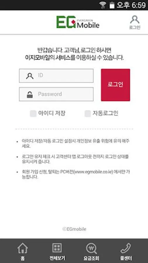 - You can also use the same account in the mobile home. Membership application is available only in PC version (www.egmobile.co.kr).