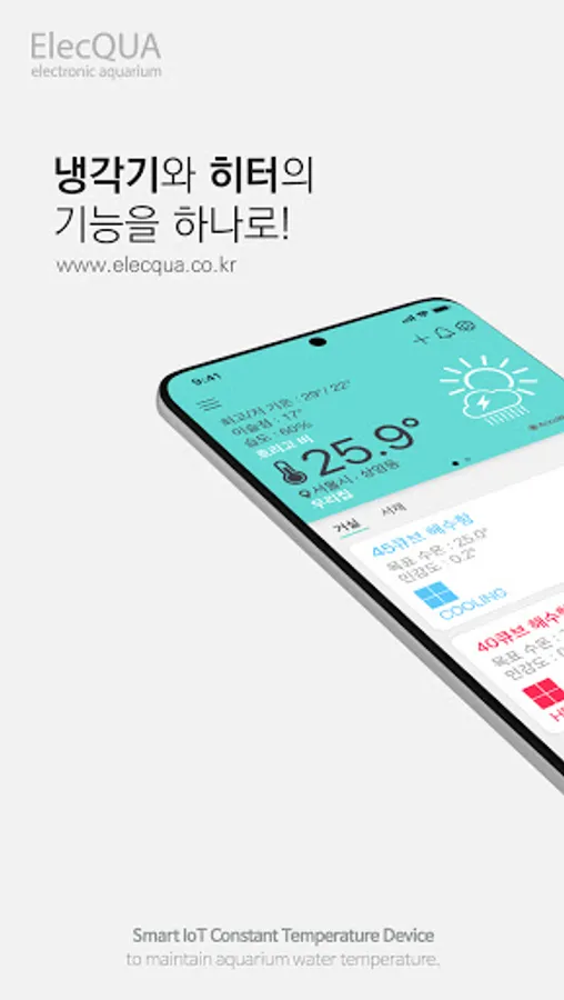 「Siege」 is a smart IoT device that automatically manages the water temperature of the aquarium fish tank for home use.