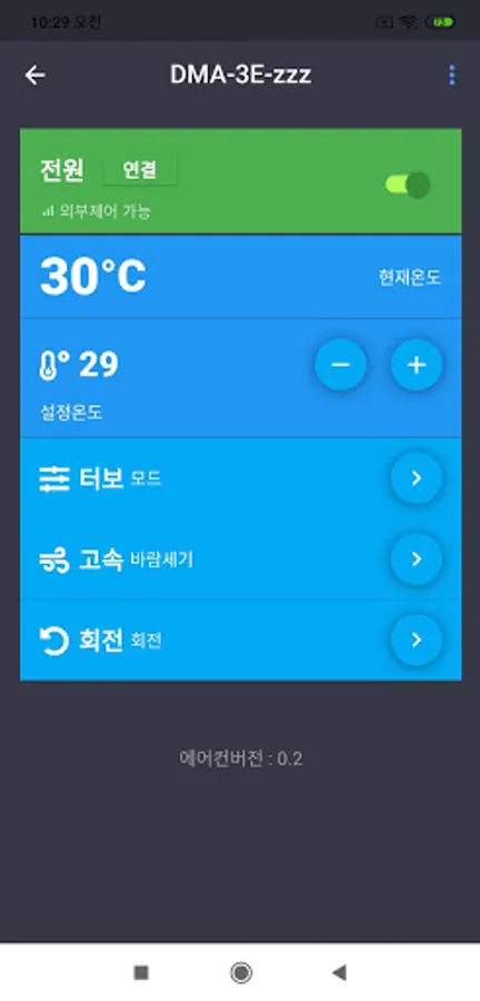 The DAEYANG AIRCON app can be controlled from the outside through control under the internal WIFI and external communication (3G, LTE, 5G).