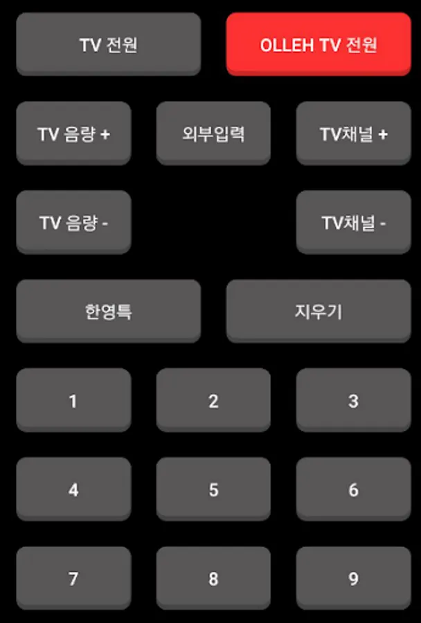 A smart device Olleh which the infrared sensor support (Ole) a tv remote control support applications.