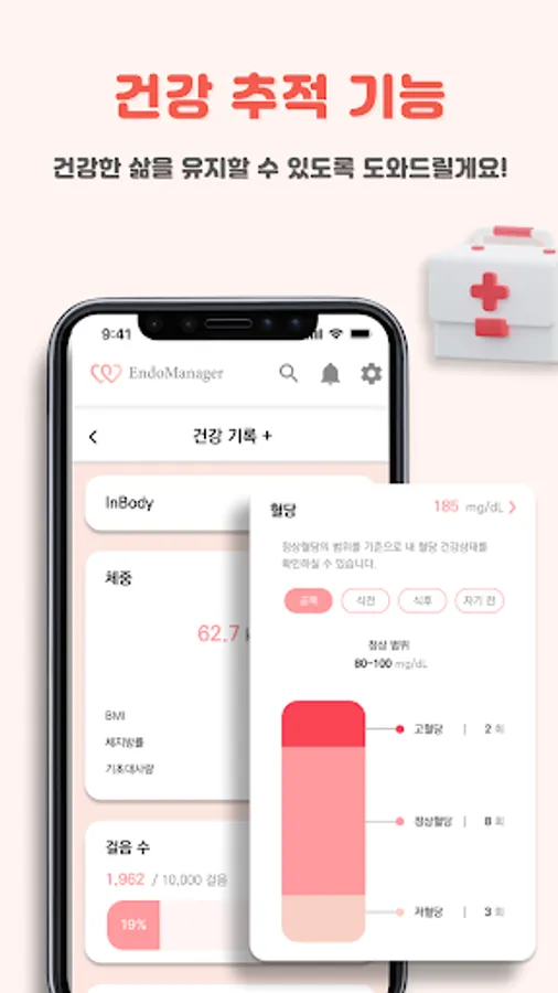 Enter your health information. You can enter weight, exercise amount, blood sugar, etc. Endo Manager will help you maintain a healthy life.