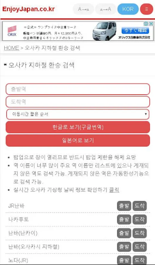 오사카 지하철 환승 검색