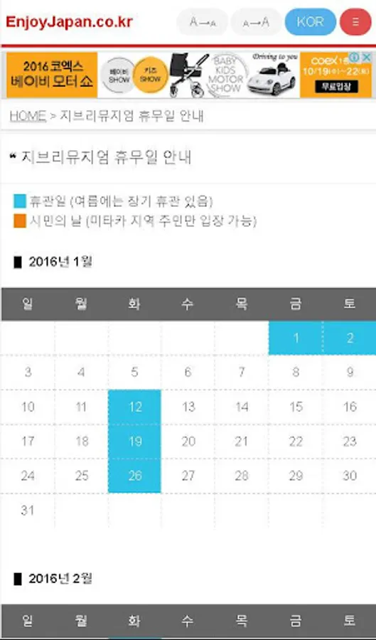 지브리뮤지엄 휴무일 안내