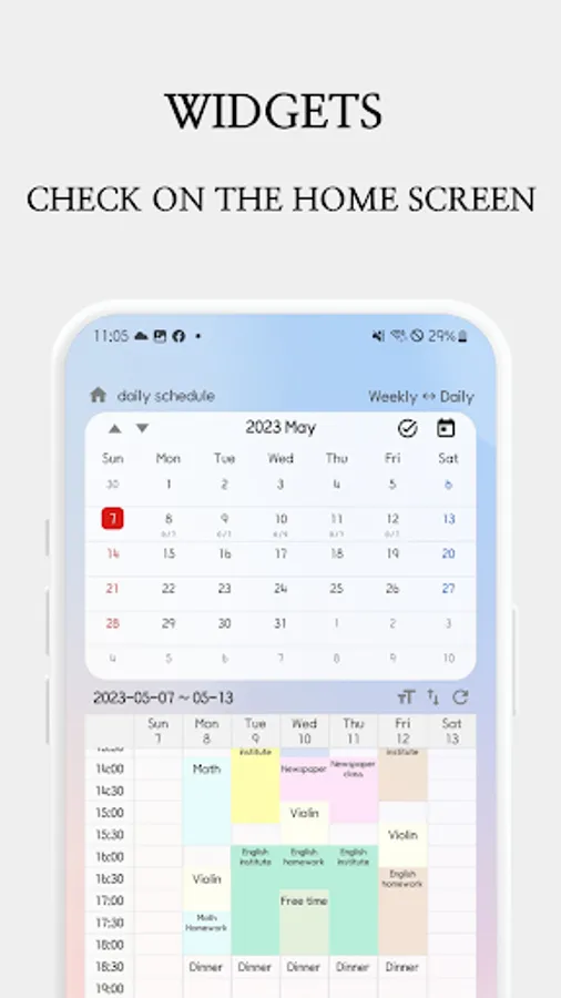 ✔ Get daily/weekly schedules right through the widget for your schedule, timetable and much more