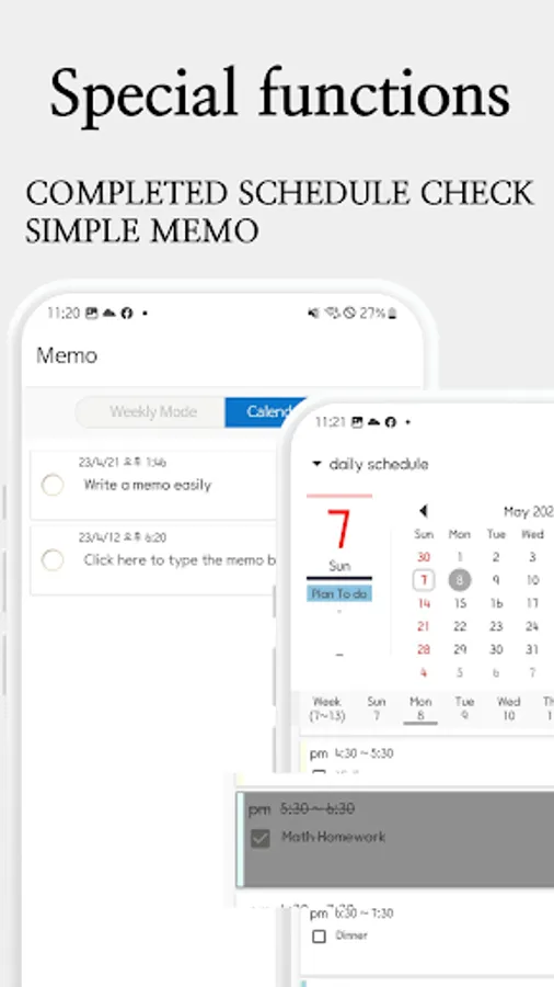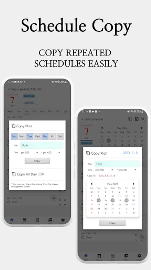 - Set plans, colors, notes, notifications on the 'Select Time First' pop-up screen