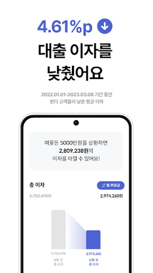 Finda customers saved an average of 520,000 won in annual loan interest.