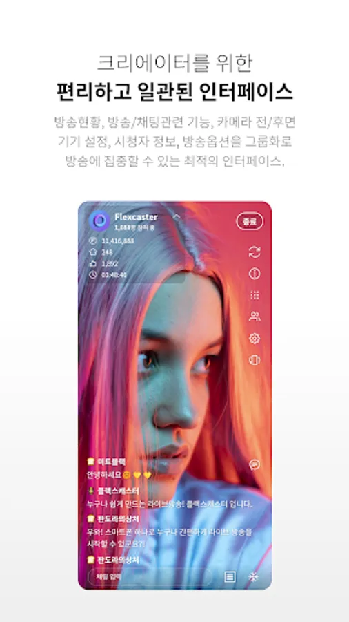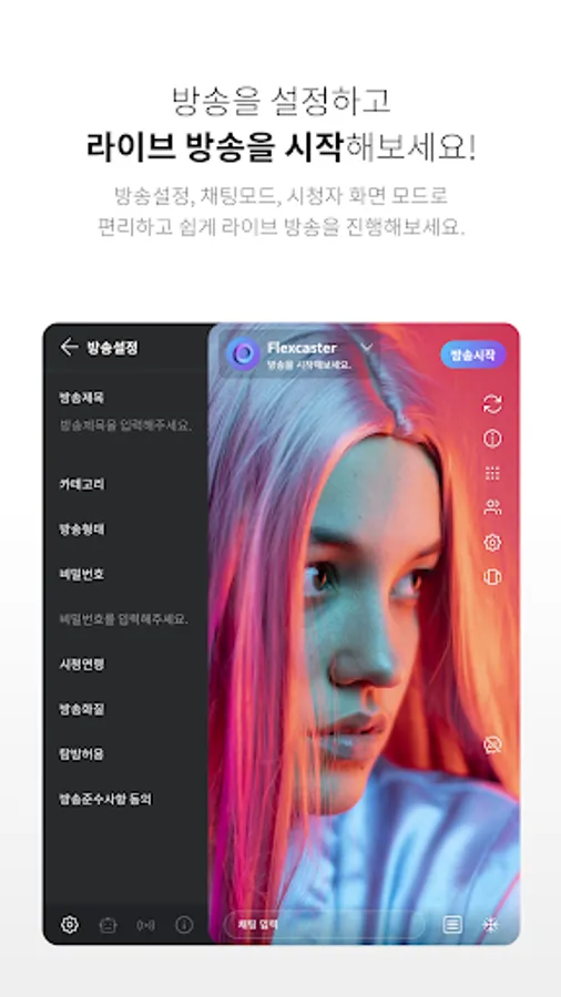 Convenient UI at a glance, easy broadcasting settings, support for horizontal/vertical broadcasting modes optimized for broadcasting, now you can broadcast live in high definition anytime, anywhere with Flexcaster.