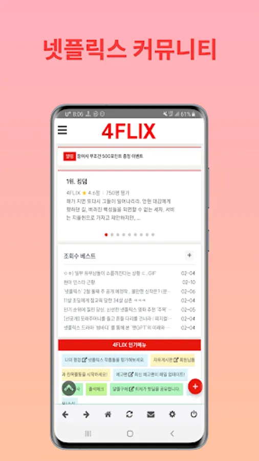There is a bulletin board where users who like Netflix services can provide reviews, ratings, and discuss them. And we operate Netflix rankings that are reflected in real-time based on user-based ratings.