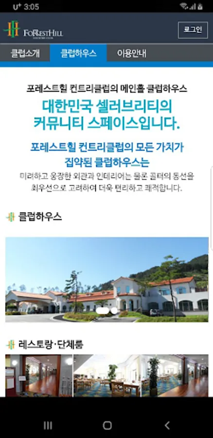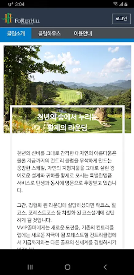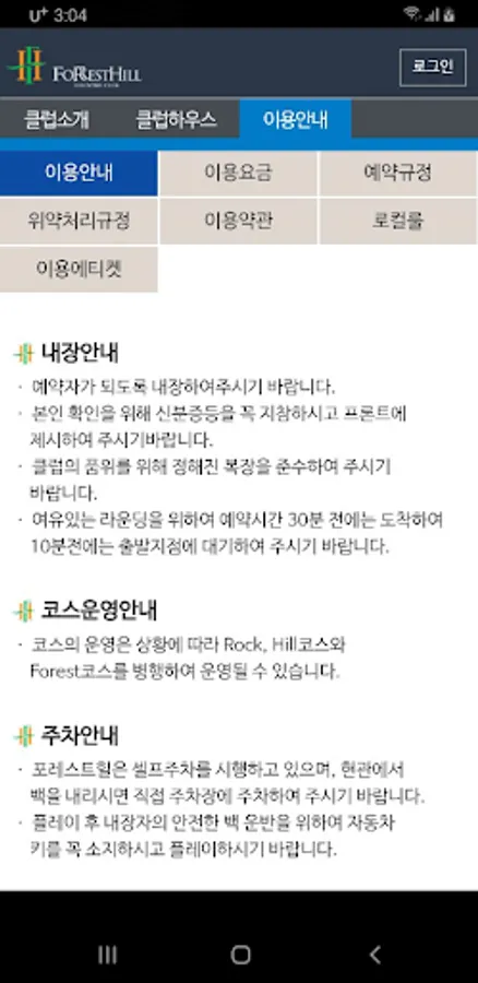 -Provides various information such as usage fee, reservation status, weather, and events of'Forest Hill CC'.