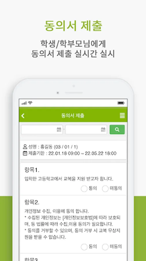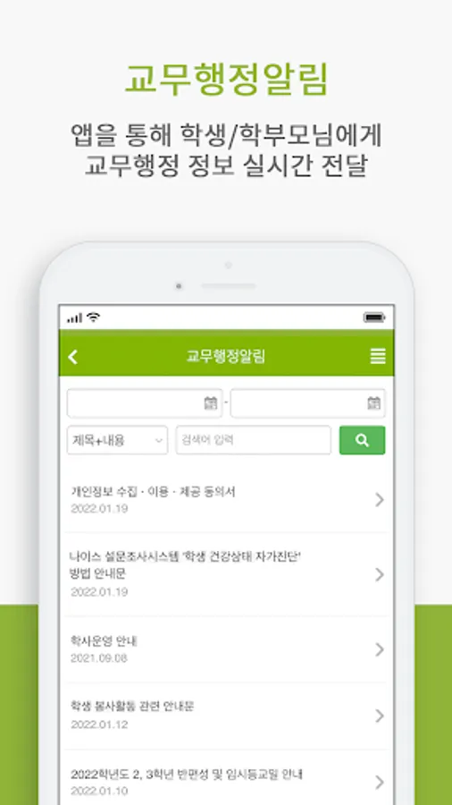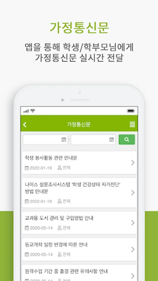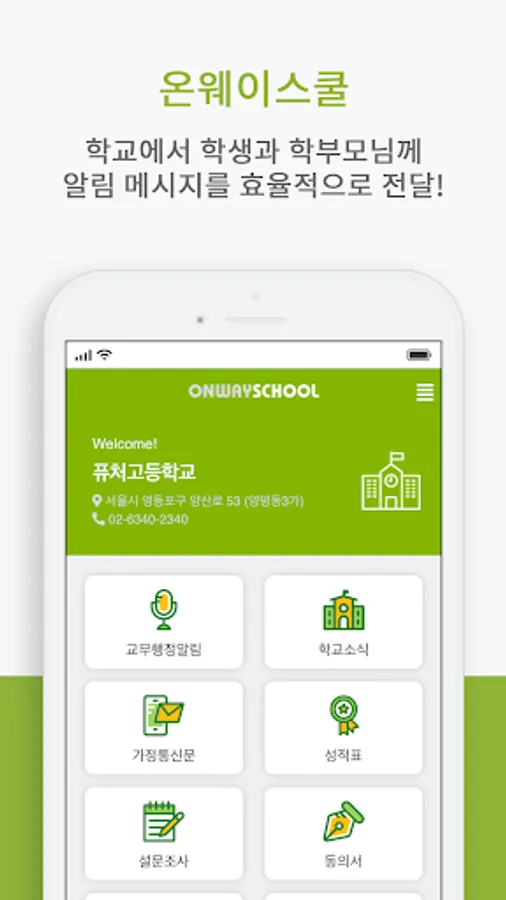 App description text: Non-face-to-face communication app between school and parents related to school administration (notice survey consent attendance score)