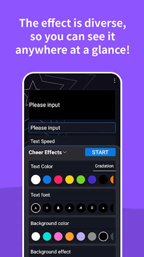 - You can easily change the font, color, and speed with just one click, and add background colors and effects.