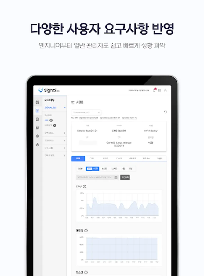 It is possible to check the list of all services on the main dashboard and sub dashboard in a list method, and the current status can be immediately identified through a concise status display