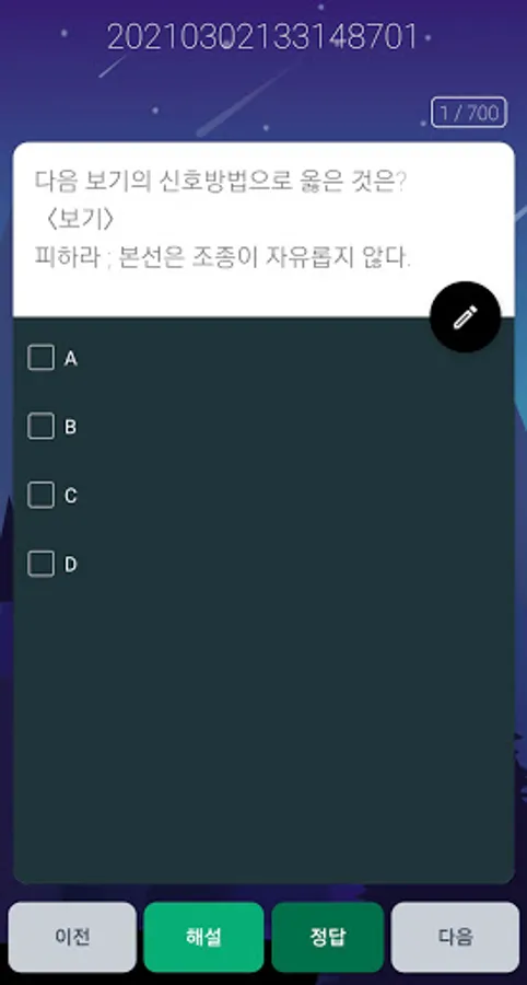-When proceeding in the test mode, 50 out of 700 questions can be solved.