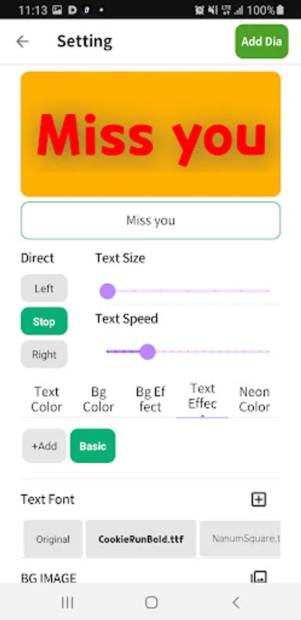 - It is possible to directly expose the text effects specified in advance in the settings.