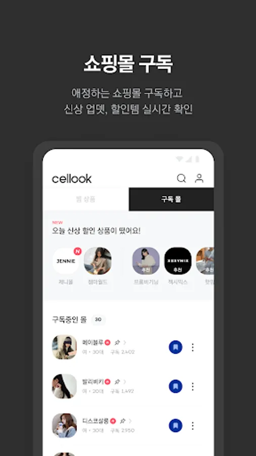 애정하는 쇼핑몰을 구독하고, 신상 업데이트와 할인 정보를 누구보다 빠르게