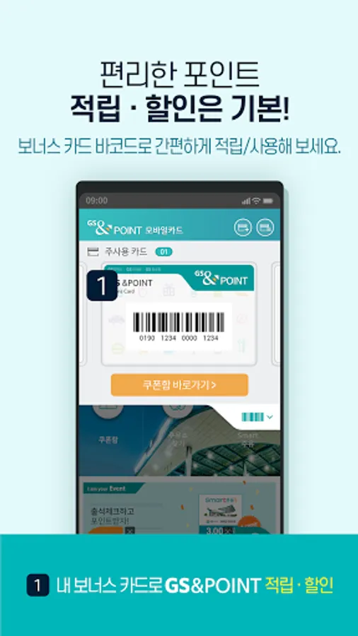 Cards: If the GS & POINT loyalty card, try to sign in "GS & POINT mobile card" app. The new mobile card is registered in the barcode slide the screen. In addition, you can manage multiple cards to register the new card in the app and set up the first card to be exposed to barcode slides the screen.