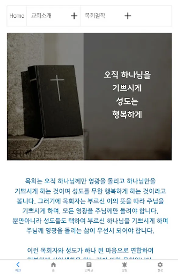 * 100% linked app: You can check the content registered on the homepage, posts, sermon videos, photos, etc. through the app in real time by linking 100% with the app.