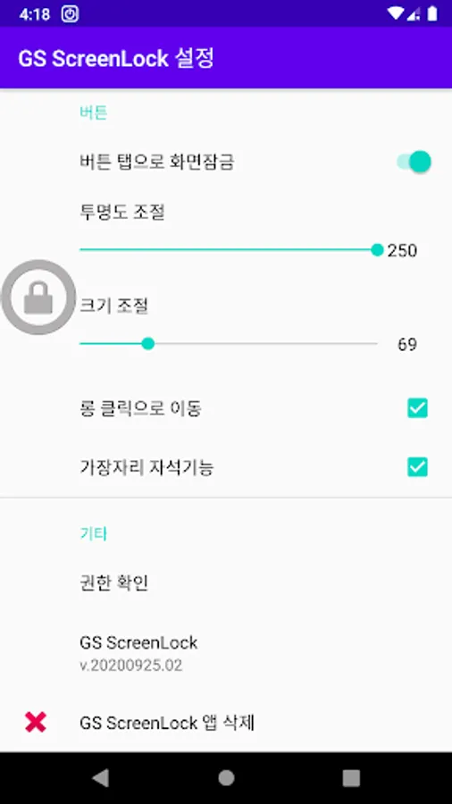 -When deleting, delete it by clicking "Delete GS ScreenLock App" at the bottom of the setting screen.