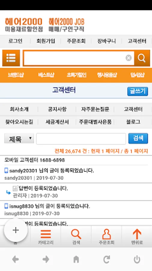 미용재료부터 잡화까지 모든 제품을 헤어2000 본사에서 발송할 수 있도록 전제품을