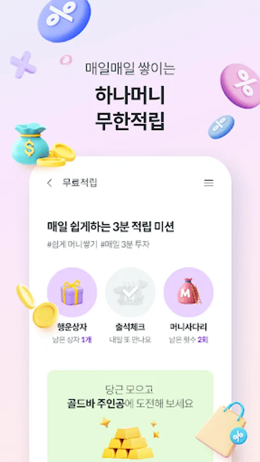 Hana Money's free accumulation continues today and tomorrow, such as a lucky box that can be opened with just a click, a money ladder, an attendance check where you can share your daily feelings and friends' feelings, and walking and accumulating money.