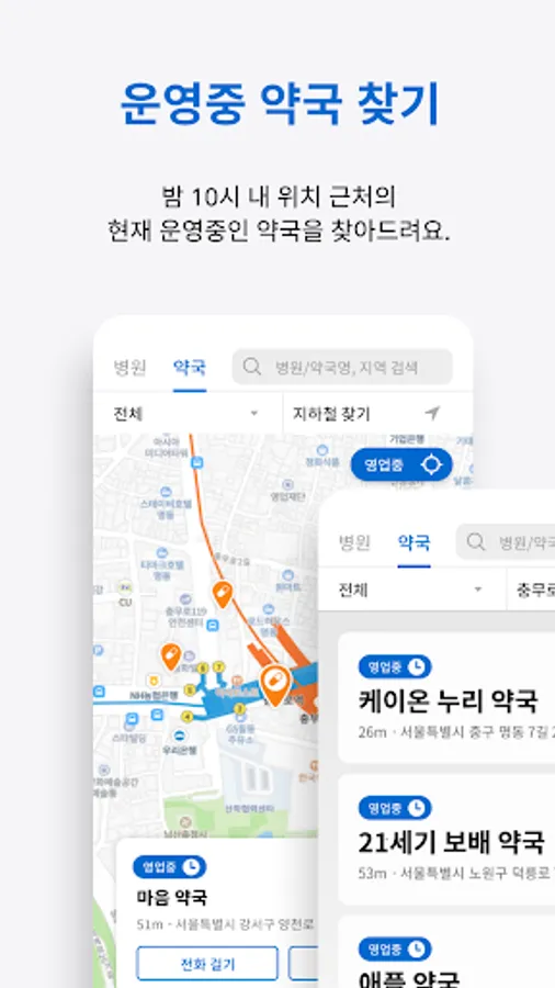 [Find pharmacies and hospitals]