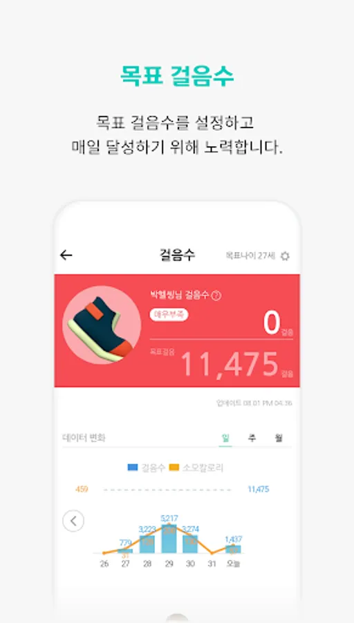 2. Set a goal step count and record your health status to discover your health little by little without even knowing it.
