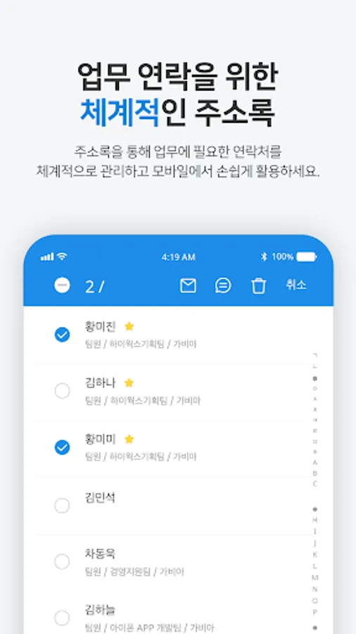 ㆍAddress Book – Check the contacts stored in the address book, from internal employees to business partners, on mobile.