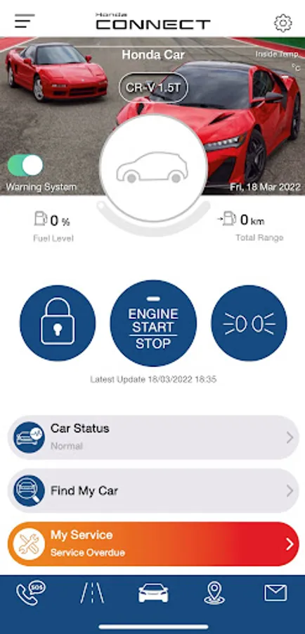 - Car Status (Diagnostic Support, Fuel, Battery, Locks, Airbag)