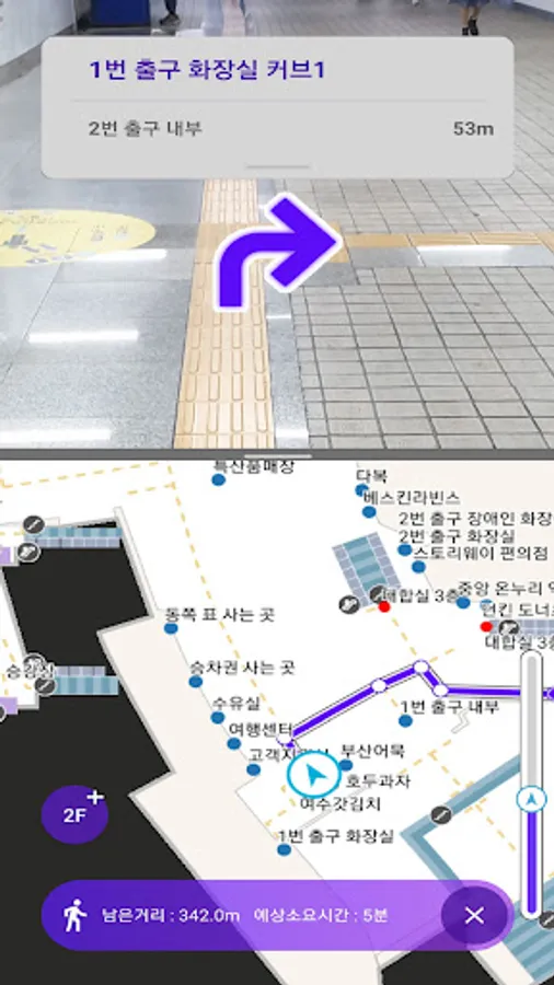 It guides the route according to the type of disability or the selected means of transportation (elevator, stairs, etc.)