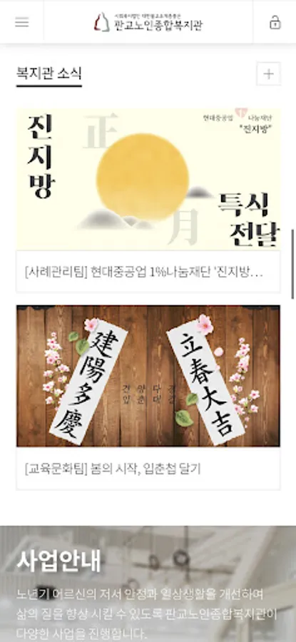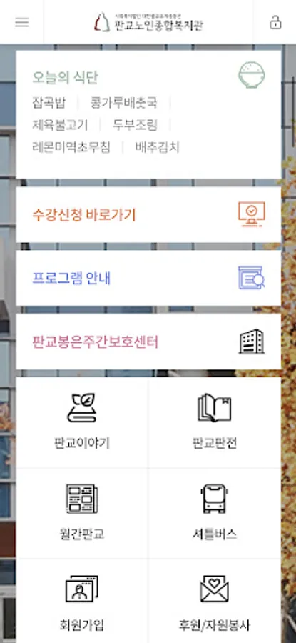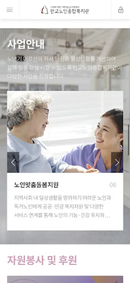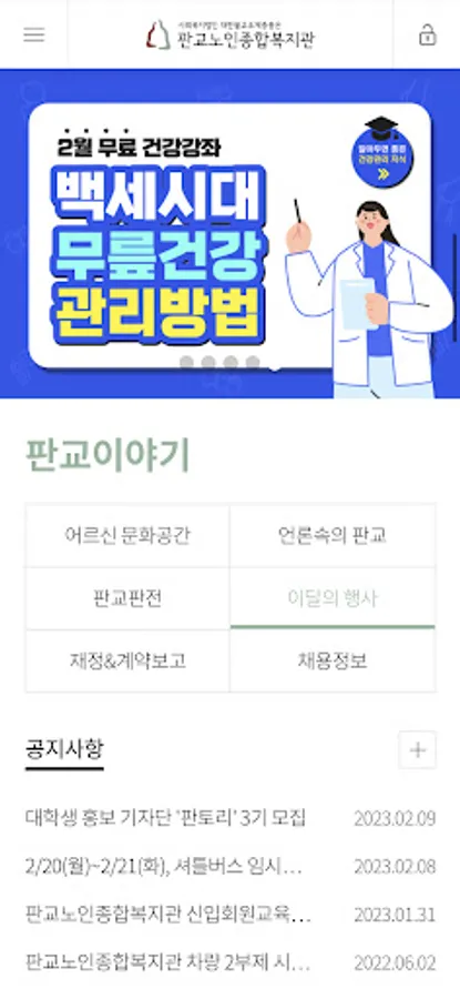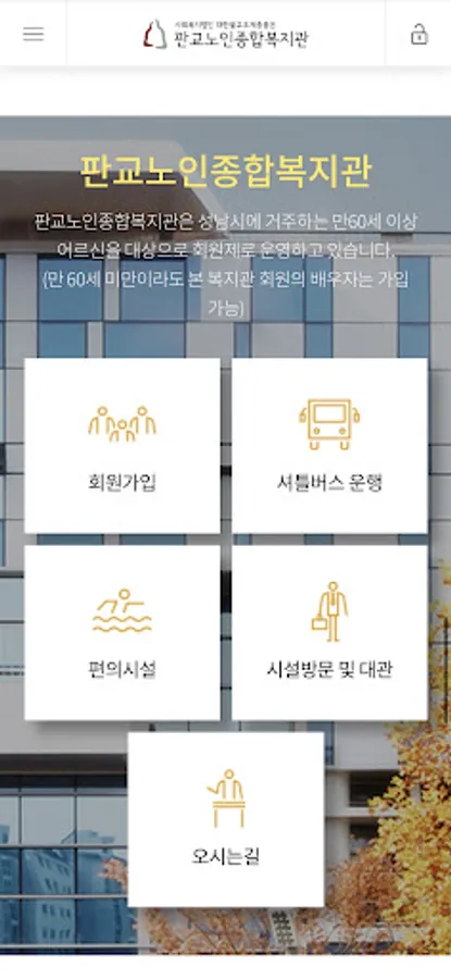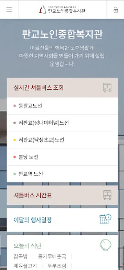 Pangyo Senior Welfare Center is a social welfare corporation that realizes a dignified and valuable life for the elderly, creating a happy old age and a local welfare community.