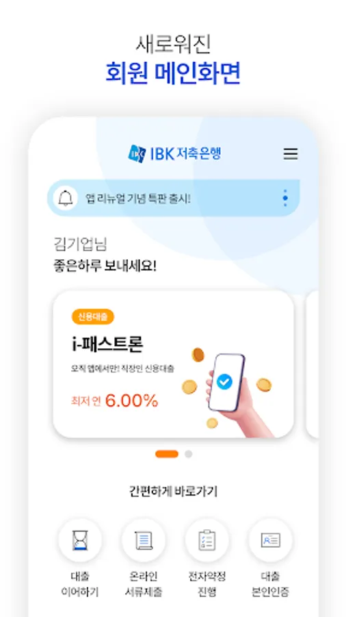 We provide benefits that only IBK Savings Bank customers can enjoy, including free transfer fees, easy loan limit inquiries, and non-face-to-face loans without visiting the bank.