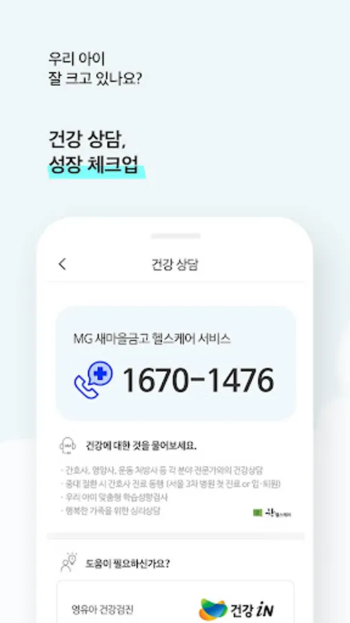 If you have any questions, please contact MG Saemaul Geumgo Health Care Center (T: 1670-1476) and a professional counselor will kindly answer you.