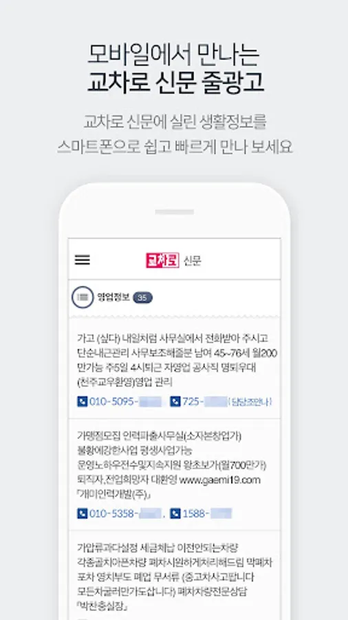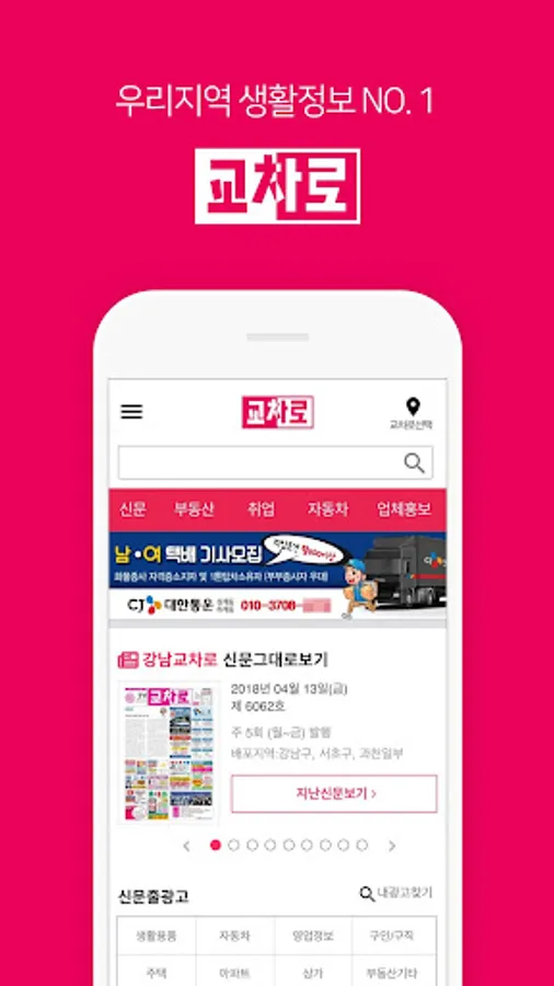 Meet the vivid real estate, employment, sales, hiking, and daily necessities-related information published at the intersection of 『Korea’s first』 daily life information newspaper quickly and easily on your smartphone.