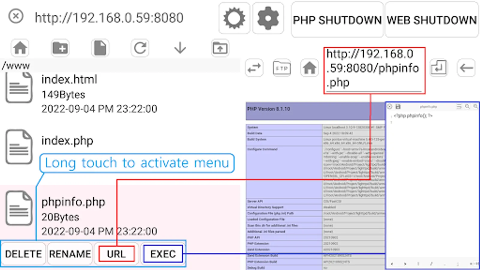9. Run a web server (lighttpd, php8, sqlite3) on your phone.