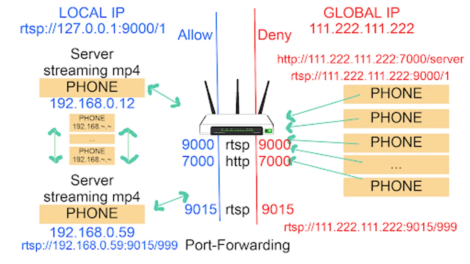 1. You will operate a server that transmits file (server_camera.dat) streaming (video, audio) data generated by the user's phone when requesting rtsp video playback from another phone.