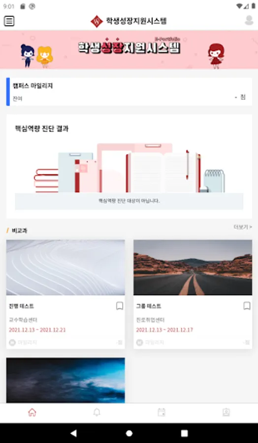 5. My Page: Provides personal services such as campus mileage inquiry and non-examination activity inquiry.
