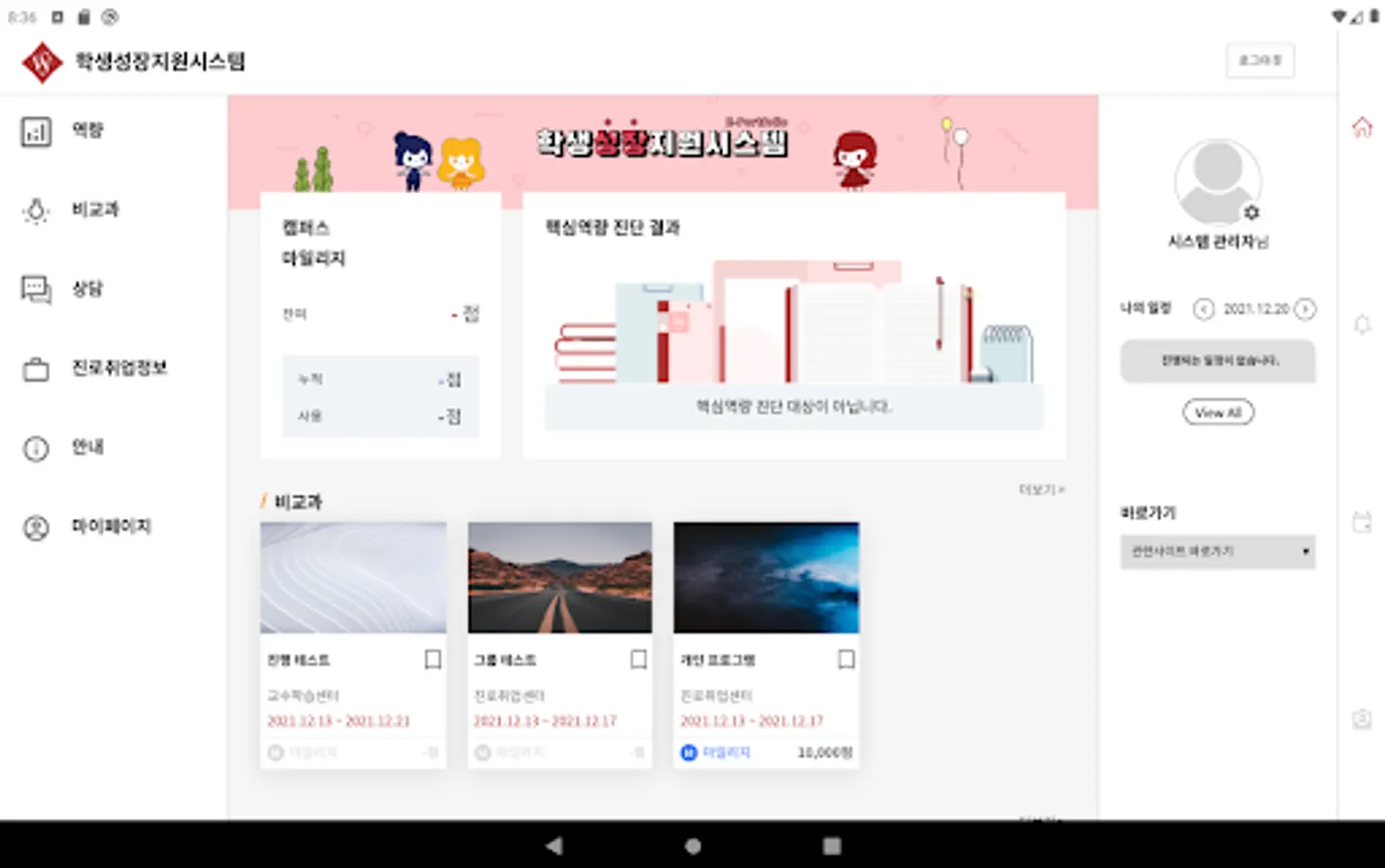 It is a system that operates a non-curricular program that meets the core competencies of Seoul Women's University, and supports the integrated management of students' extra-curricular activities, career/employment, and counseling.