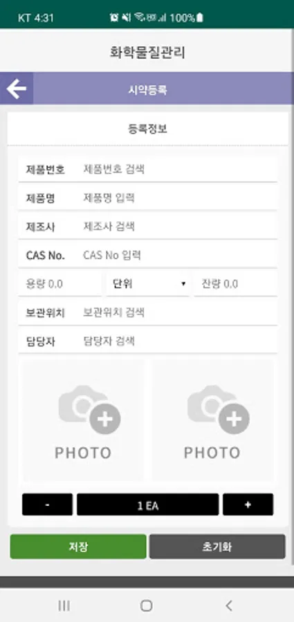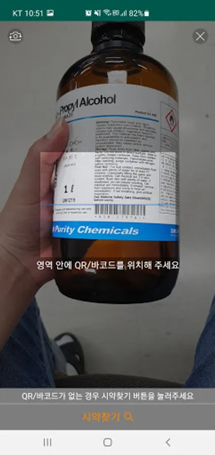 With the QR, BAR CODE scanner and camera of the IMG Tech laboratory safety management system, the product code and photo of the basic reagent bottle are acquired through this app.
