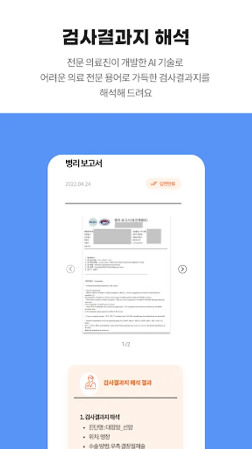 AI technology developed by professional medical staff interprets test results filled with difficult medical terms.