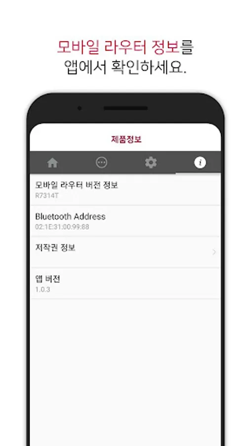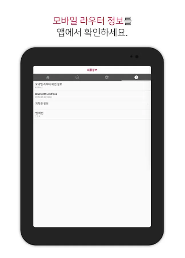 Mobile Router Version Information / Bluetooth Address / Copyright Information / App Version